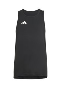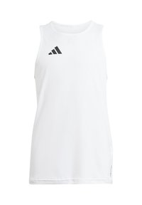 Débardeur de sport bleu sans manches avec un logo Adidas blanc en haut à gauche de la poitrine.