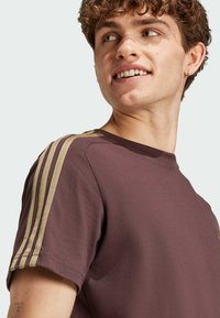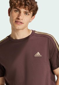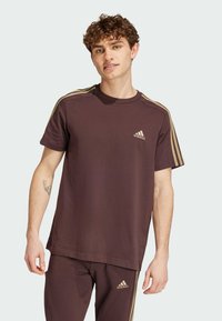 ESSENTIALS SINGLE 3-STRIPES - T-shirt imprimé - shadow brown