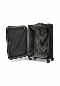 Prêt pour une nouvelle aventure ? La valise en tissu à quatre roues d'American Tourister - série Cloudrider - devient votre compagnon de voyage ultime. À l'extérieur se trouve une poche placée de manière pratique, un compartiment en filet pour les achats spontanés et un pli extensible qui transforme la valise en un miracle d'espace. Les sangles de rangement croisées assurent l'ordre, tandis que la poignée verrouillable et le cadenas TSA offrent une manipulation sans problème et la sécurité. La poignée de transport est fiablement robuste et le polyester résistant rend cette valise durable dans toutes les situations. Ne manquez plus jamais de confort et de fonctionnalité lors de vos voyages ! Découvrez maintenant la valise en tissu American Tourister ! Grâce au pli extensible, la valise peut être étendue à une largeur de 32 cm.
