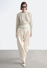 GATHERED TIE-BELT - Blouse - dusty white