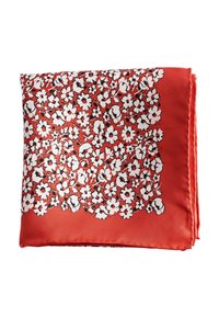 Foulard carré rouge avec un motif floral blanc dense et une bordure unie rouge.