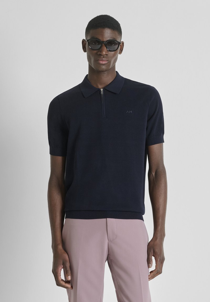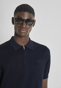 REGULAR FIT SOFT WITH LOGOED BADGE - Polo - blue-grey