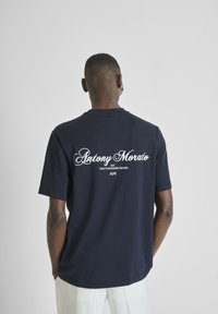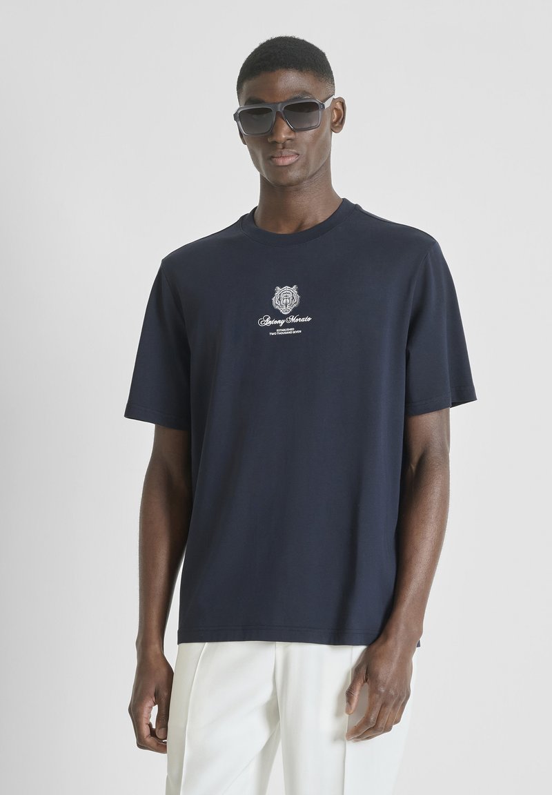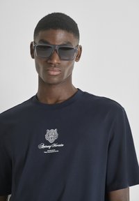 ROUND NECK WITH PATCH PRINT AND BACK MATT PLASTIC LOGO - T-shirt imprimé - blue-grey