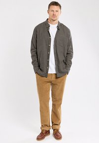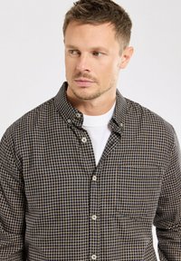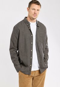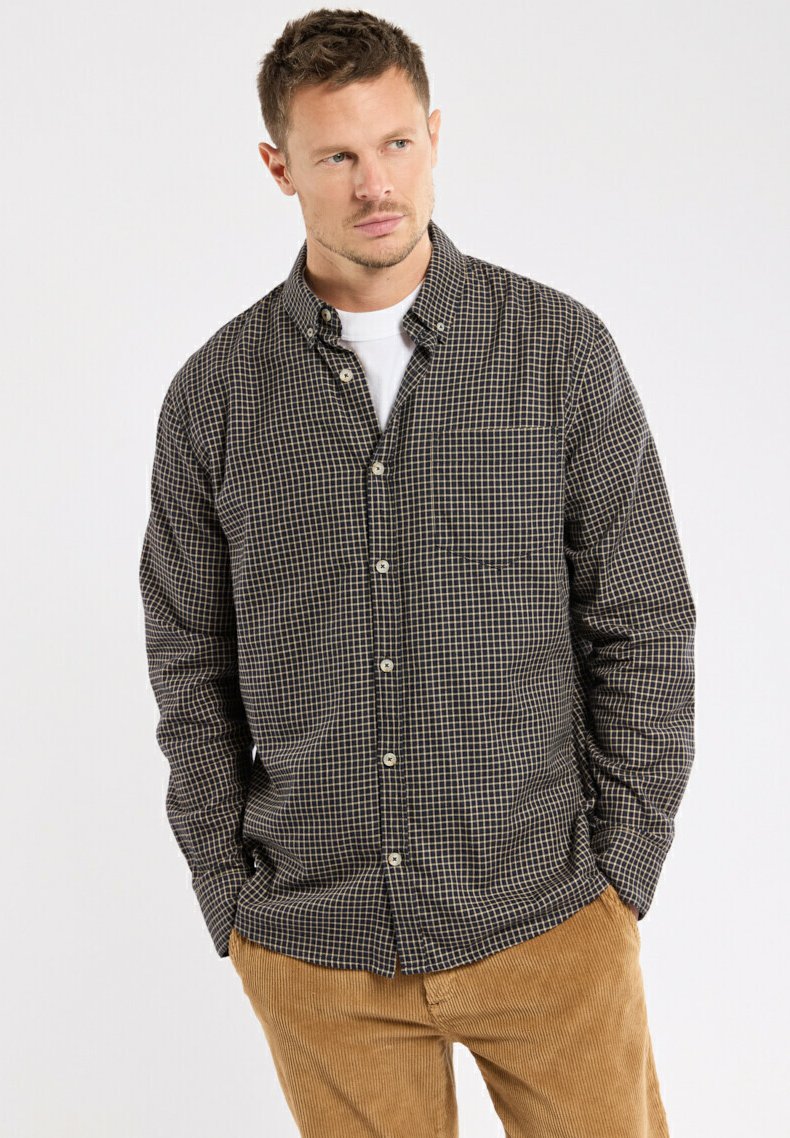 COUPE DROITE - Chemise - carreaux marine beige