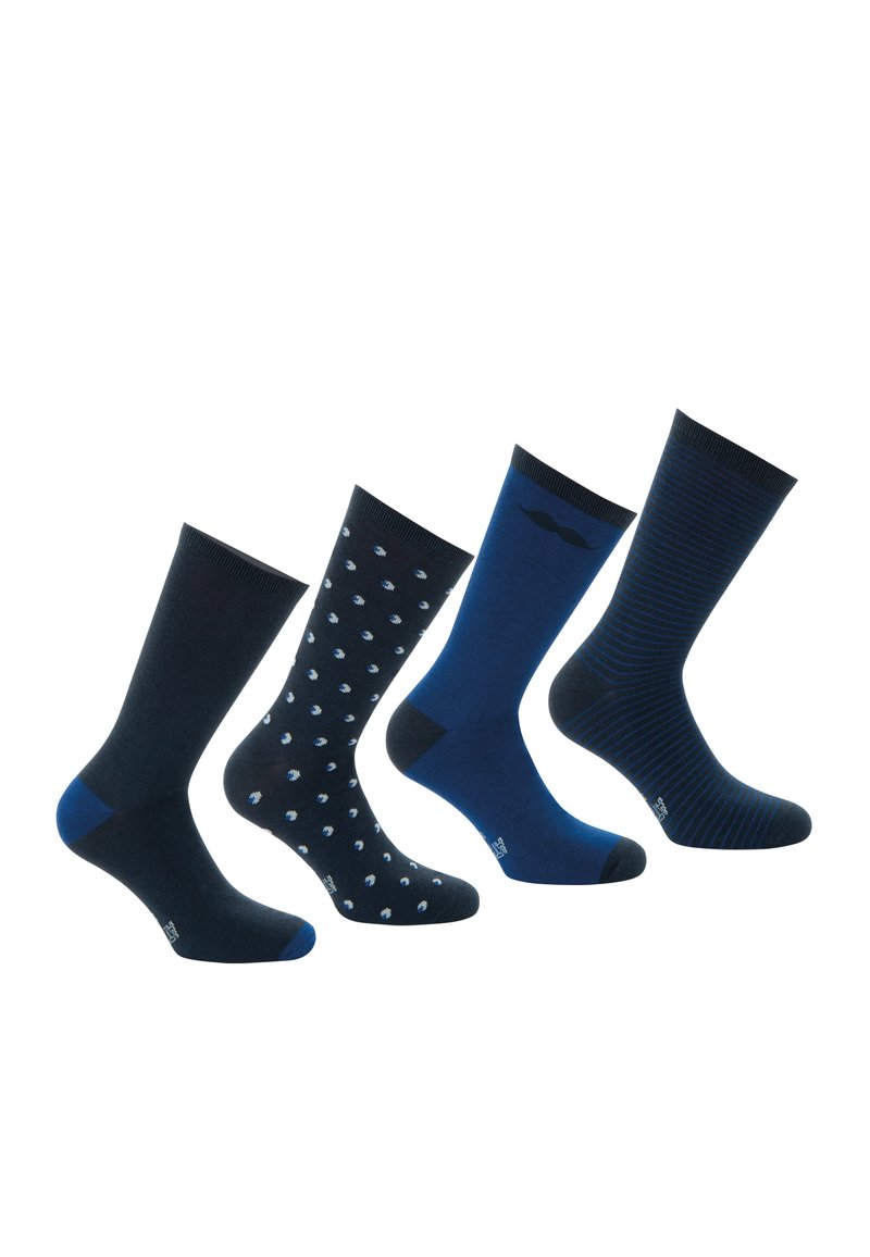 LOT DE 4 PAIRES DE CREW - Chaussettes - marine pois bleu rayé