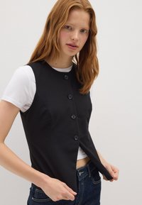 Le gilet noir de la ligne B.Angel est un vêtement polyvalent et sophistiqué, parfait pour toutes les occasions. Réalisé en tissu extensible, il offre une coupe confortable et adaptable. La fermeture à boutons à l'avant complète le look moderne, en le rendant idéal à porter sur un haut ou une chemise. Avec son design élégant, ce gilet est un indispensable de la garde-robe de chaque femme.