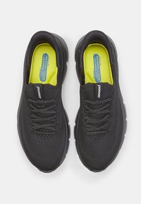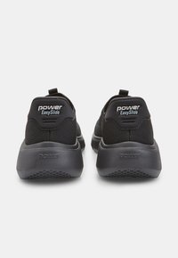 Baskets légères noires avec tige en mesh respirant, bout arrondi, semelle texturée et fermeture à lacets élastiques pour un enfilage facile.