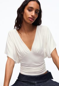 RUCHED V-NECK T-SHIRT 02198187 - T-shirt imprimé - white