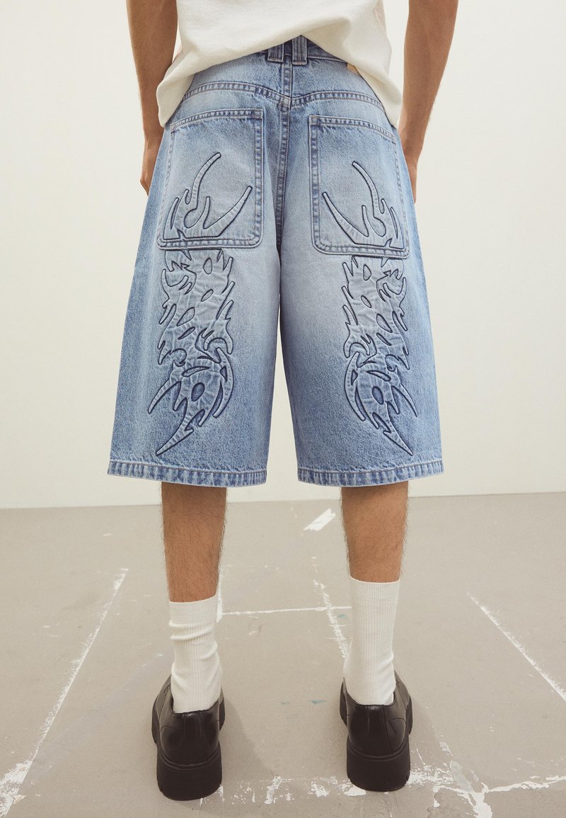 EMBOSS BAGGY DENIM - SHORT - Short en jean - light blue
