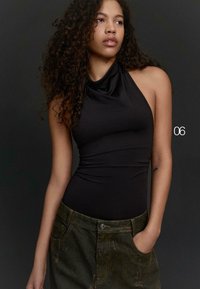 GATHERED HALTER-NECK - BODYSUIT - T-shirt imprimé - black
