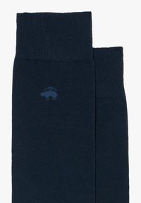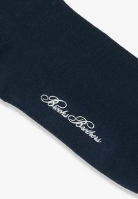 Chaussettes bleu marine en mélange de coton doux, avec un bord côtelé et un petit logo brodé. Texture lisse avec un design classique.
