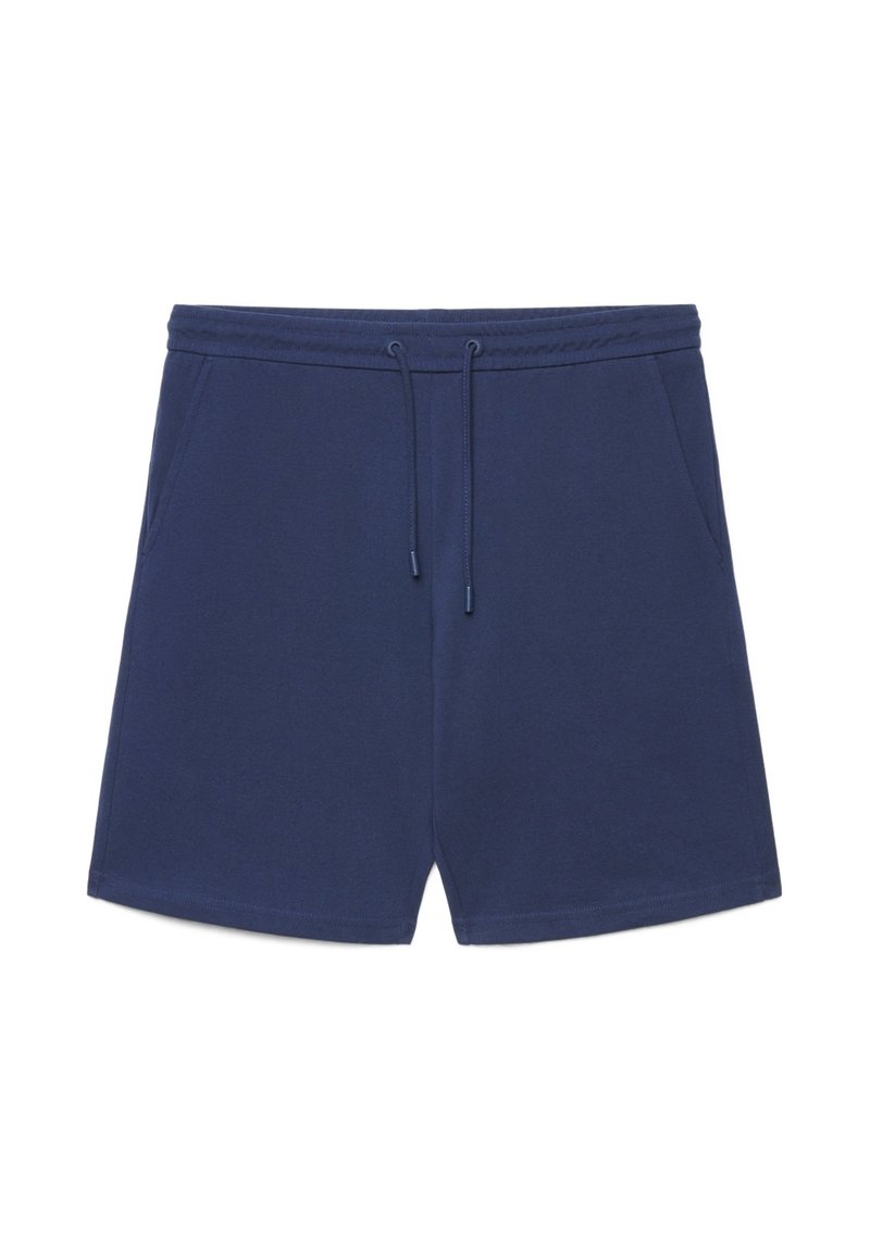 Shorts décontractés bleu marine avec taille élastique, cordon de serrage ajustable et poches latérales, conçus pour le confort et le port quotidien.