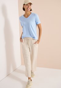 BASIC T-SHIRT MIT V-NECK - T-shirt basique - light sky blue