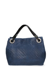 Sac à main tissé rouge avec une finition texturée, poignées en cuir noir et un design spacieux, porté avec une chemise beige et un pantalon noir.