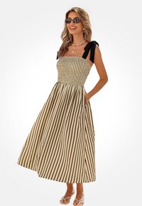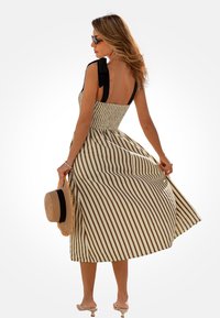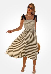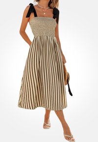 STRIPED SMOCKED MIDI WITH TIE STRAPS - Robe de jour - beige brown black