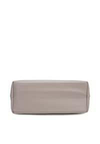 Sac cabas en cuir gris clair avec doubles anses, forme rectangulaire et petit anneau en métal sur une ansse.