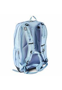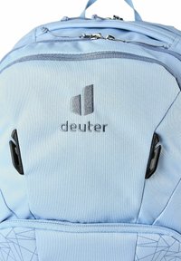 Sac à dos Deuter Cotogy bleu clair avec plusieurs compartiments zippés et motif géométrique sur la poche avant.