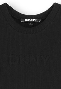 Robe noire avec un haut côtelé et une jupe fluide. Dotée de manches longues et d'un col rond. Logo DKNY embossé sur le haut devant.