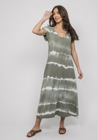 ROBE TEE-SHIRT LONGUE MOTIFS IBOLIA - Robe longue - kaki