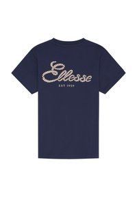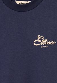 T-shirt bleu marine à manches courtes avec petit logo beige "Ellesse EST 1959" sur la poitrine gauche.