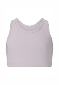 Crop top de sport blanc avec une texture lisse, design dos nageur et sans coutures visibles, adapté aux activités sportives.