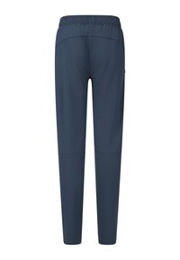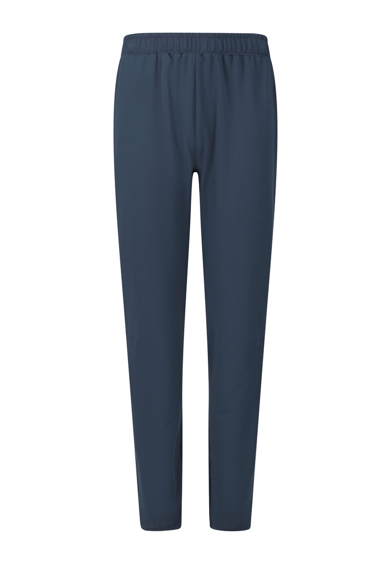 Pantalon de sport bleu marine avec taille élastique et jambes droites fuselées, présenté sur un fond blanc.