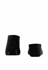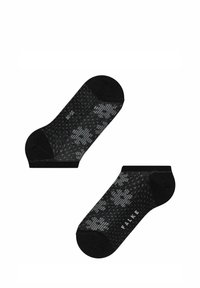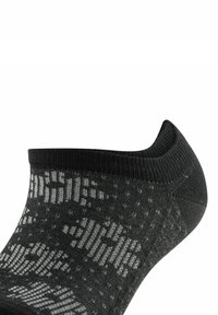 Paire de chaussettes noires basses avec des motifs abstraits gris, présentées sur un fond blanc.