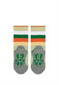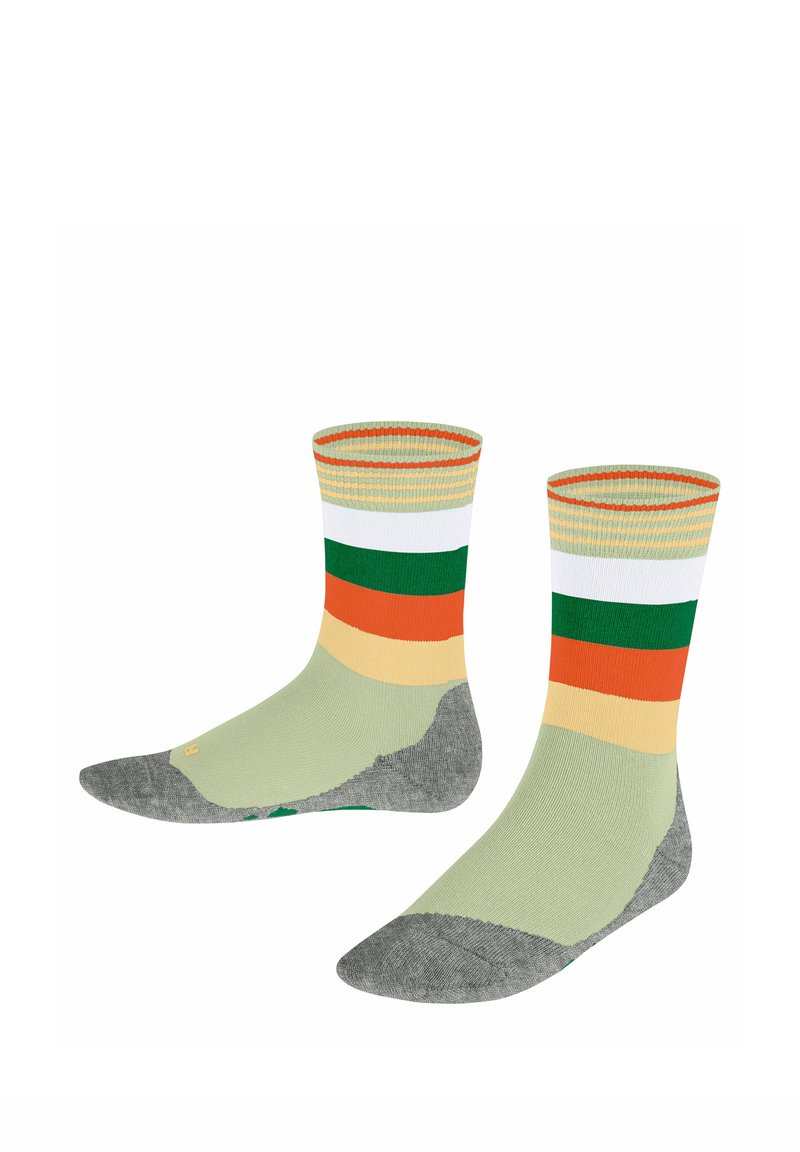 FALKE – NOUS PRENONS SOIN – COTON : respectueux des ressources, socialement responsable, traçable ; Matériau spécial pour la semelle assurant un transport optimal de l'humidité et des pieds secs ; Rayures sportives et colorées sur la tige et le bord-côte ; Empreinte de renard sur la semelle ; Forme anatomique FALKE (G/D)