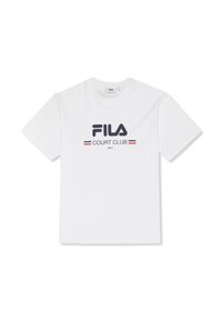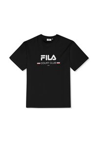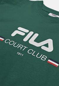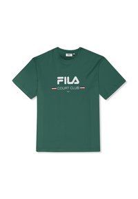 T-shirt vert à manches courtes avec col rond, logo "FILA" blanc et texte "COURT CLUB 1911" centré sur le devant.