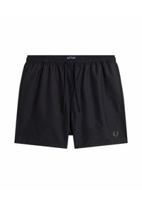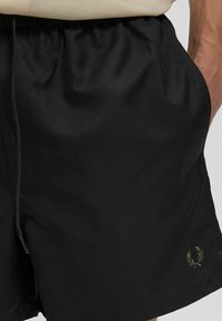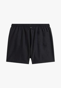 Homme portant un short noir à taille élastique et des chaussures noires sans lacets, debout devant un fond clair uni.