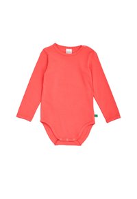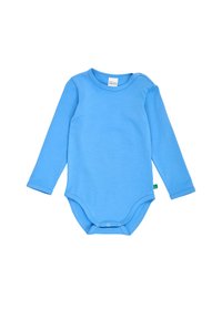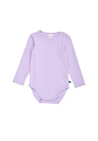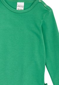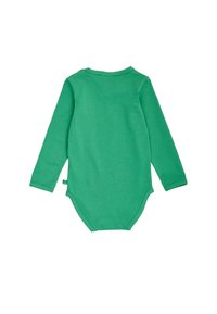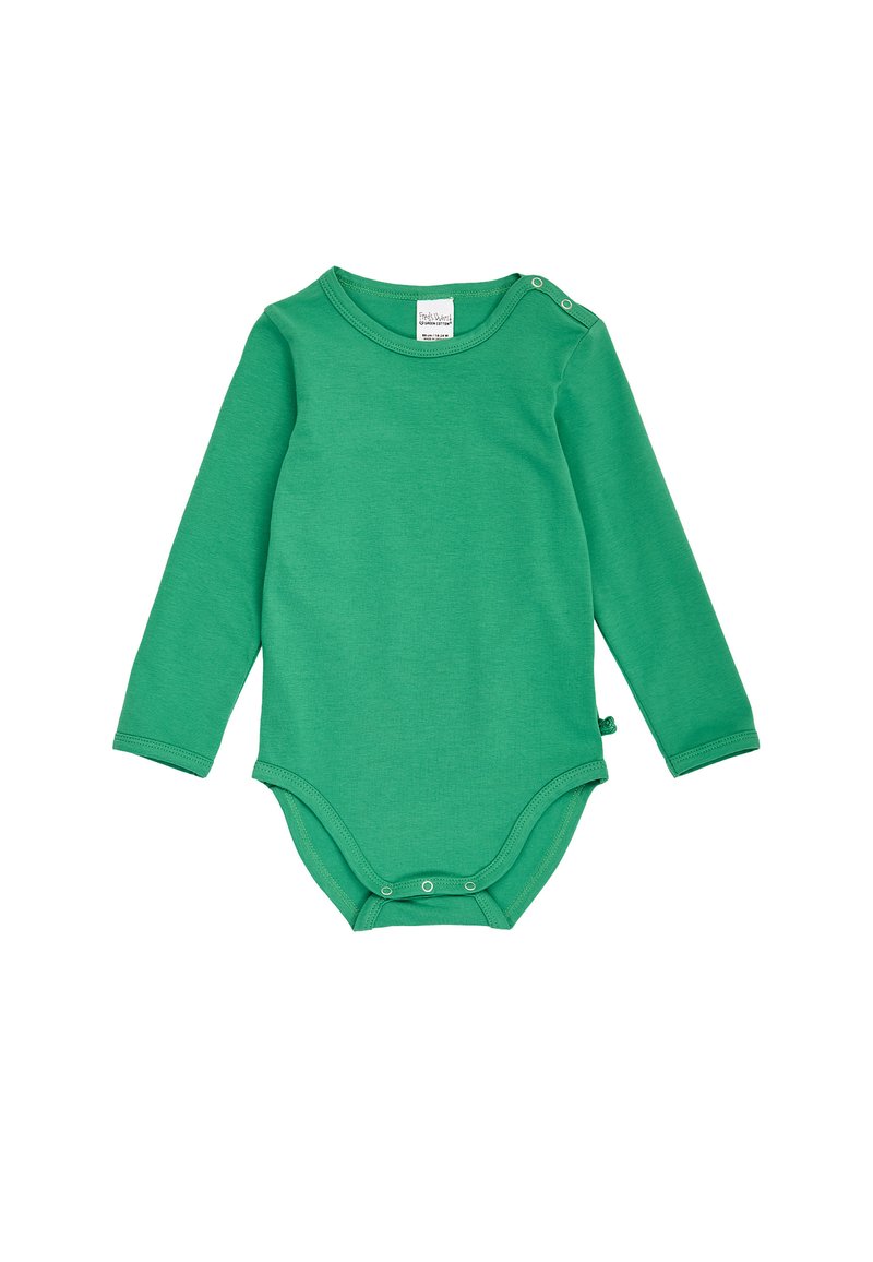 Body bébé vert à manches longues avec fermetures à pression à l'épaule et à l'entrejambe, design uni, tissu en coton.