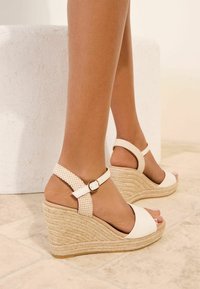 REGULAR FIT - 2 PART PEEP TOE ESPADRILLE WEDGE SANDALS FIT . - Espadrilles - white faux leather