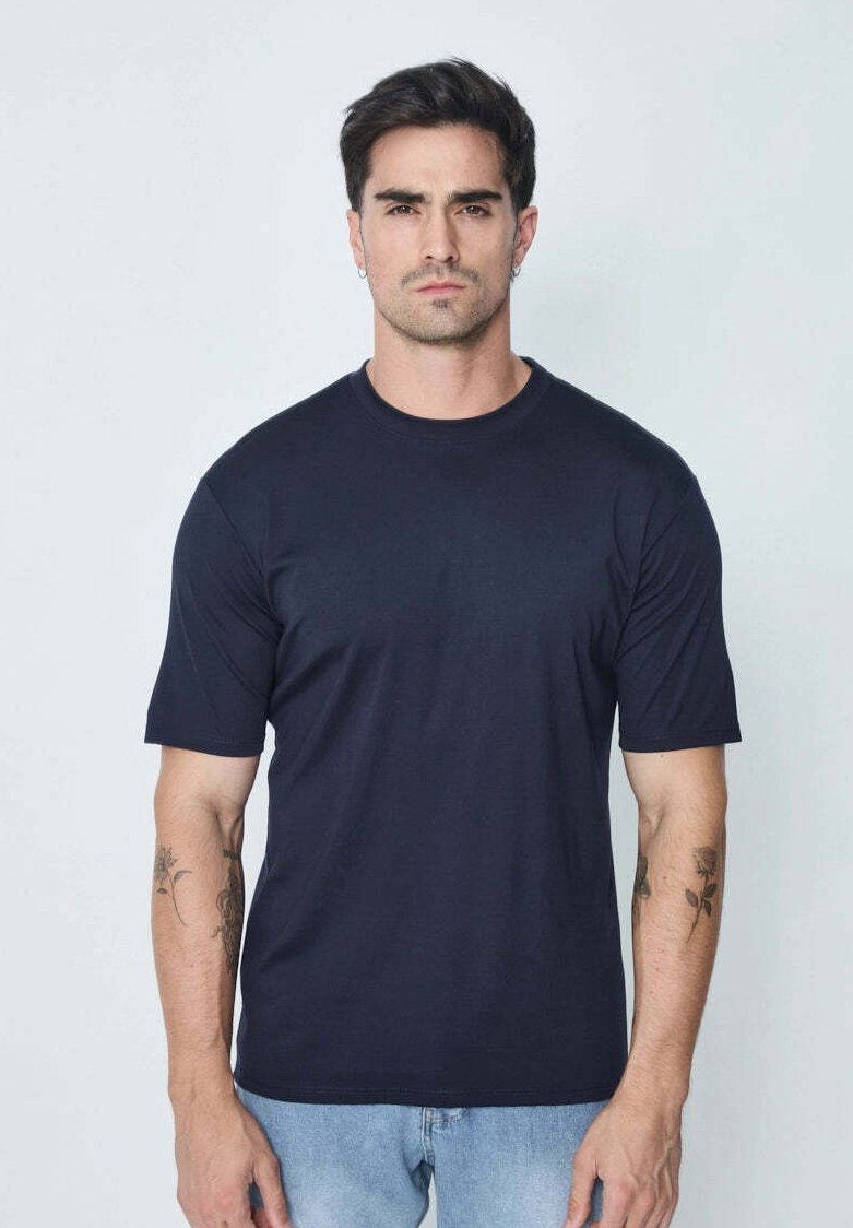 UNI COL ROND - T-shirt basique - bleu marine