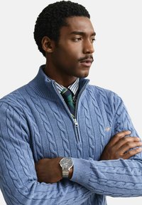 COTTON CABLE HALF ZIP - Pullover - denim blue melange