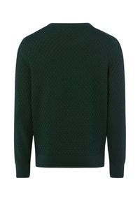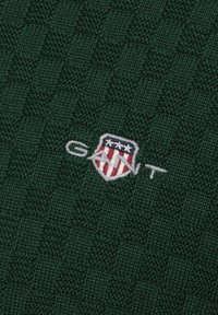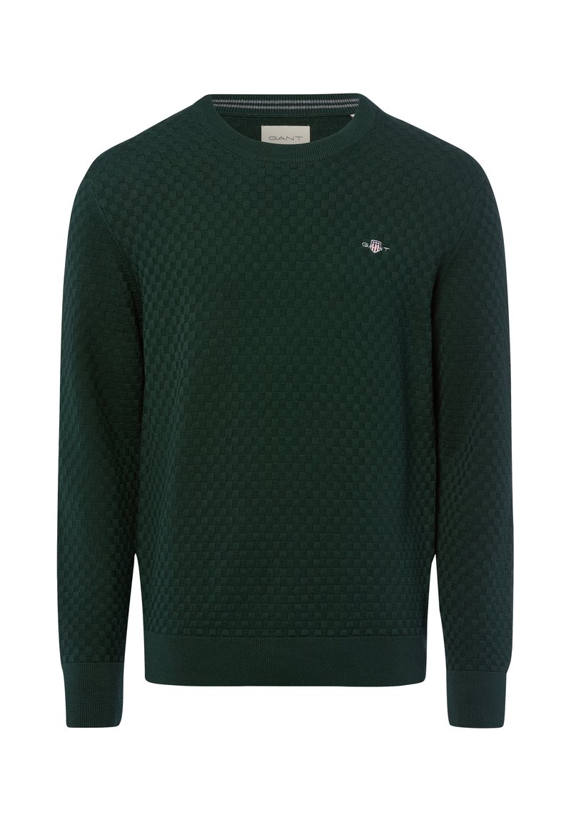 Pull en maille vert foncé à manches longues avec col rond et petit logo brodé sur la poitrine gauche.