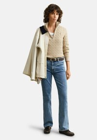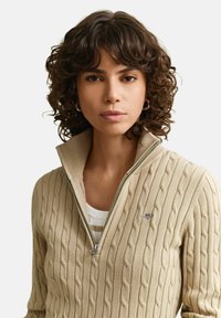 STRETCH CABLE HALF-ZIP - Pullover - oat beige