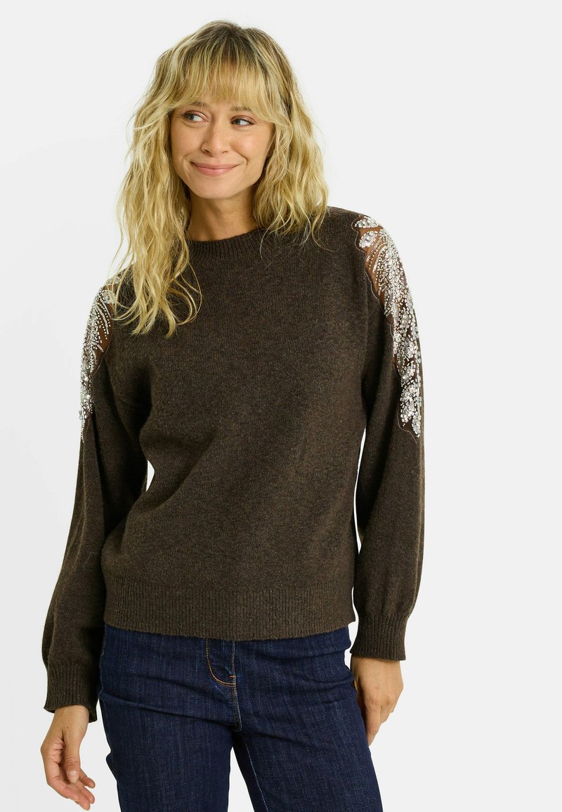ÉPAULE AJOURÉE PERLES - Pullover - chocolat