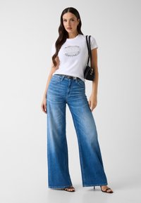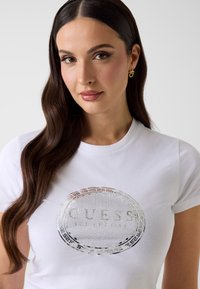 LOGO-T-SHIRT MIT STRASSSTEINEN - T-shirt imprimé - weiß