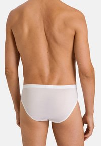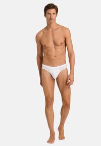 Le slip en blanc de la marque Hanro procure une agréable sensation de douceur sur la peau grâce à ses matières de qualité.