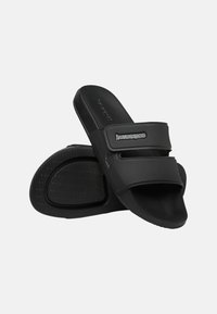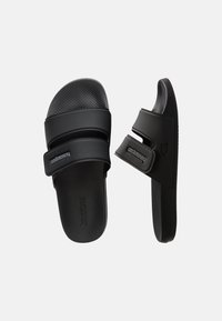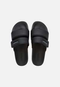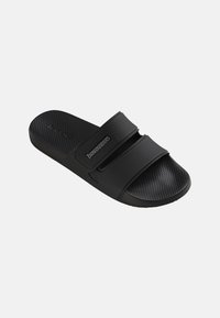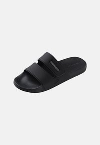 Sandale noire à enfiler avec deux brides réglables et une semelle texturée, arborant le logo Havaianas sur la bride supérieure.