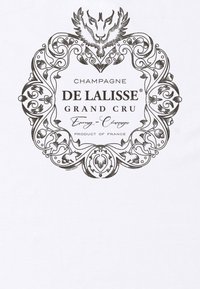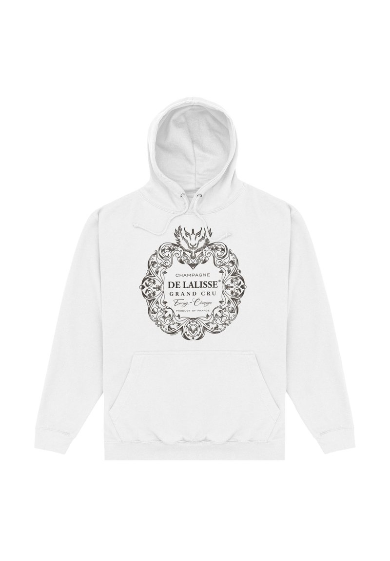 Sweat à capuche blanc avec un emblème noir orné détaillé et le texte « Champagne De Lalisse Grand Cru, Produit de France » sur le devant.