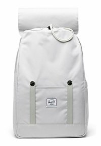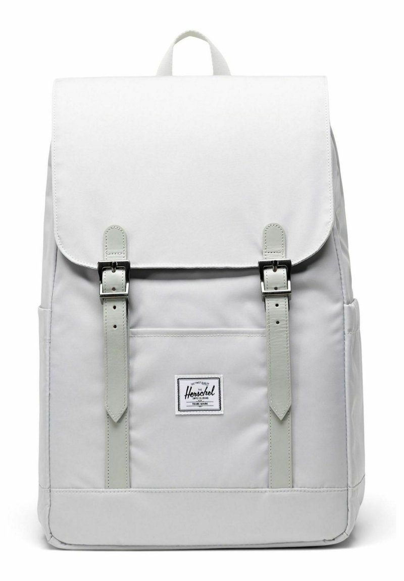 Sac à dos blanc Herschel avec rabat, bretelles à double boucle, poche avant, poches latérales et écusson en tissu avec logo au centre avant.