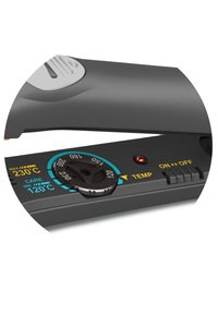 Fer à lisser professionnel doté de plaques en céramique de dernière génération qui s'adaptent parfaitement à la surface des cheveux. Sa molette de réglage de la température permet de sélectionner la chaleur idéale pour chaque type de coiffure. De 120 °C à 230 °C.