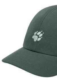Casquette verte avec une visière courbée et une sangle noire ajustable. Dispose d'une doublure intérieure texturée et d'un logo discret à l'avant.