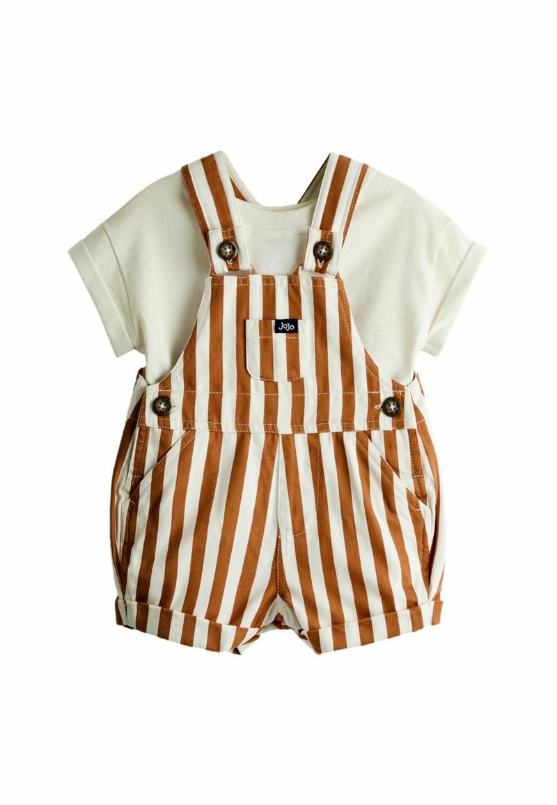 REGULAR FIT - 2-PIECE TWILL DUNGAREE SET & T-SHIRT . - Salopette - tan brown stripe