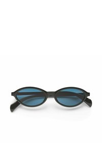 Jeune homme aux cheveux coupés court, portant de petites lunettes de soleil ovales foncées, une veste grise zippée et une petite boucle d'oreille en anneau sur fond blanc.
