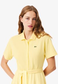 Inspirée du polo Original L.12.12, cette robe présente une coupe féminine fit-and-flare, de véritables boutons en nacre et le petit piqué signature.