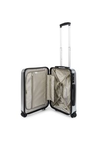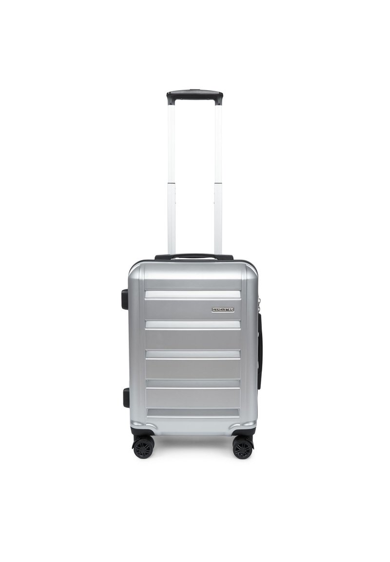 Valise cabine 30L, 4 poches intérieures zippées, code de sécurité, sangle. Doublure : 100% Textile Logo. Finition : Métal argenté mat. Dimensions : 35 x 55 x 20 cm