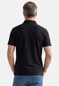 Homme aux cheveux gris et à la barbe grise portant un polo gris, un jean bleu foncé et des baskets blanches, debout avec une main dans la poche.
