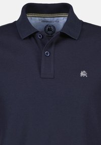 Homme aux cheveux gris et à la barbe, portant un polo bleu marine, un jean bleu et des baskets blanches, debout, une main dans la poche, regardant vers la gauche.